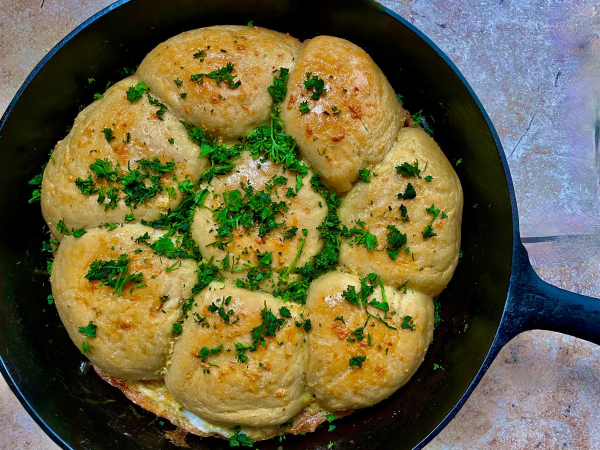 Pampushka means a beautiful plum women in Ukrainian. (I let you figure out the connection to this dish). These tasty dinner rolls are baked in the oven and are slathered with garlic infused oil. They are traditionally served with Borscht or a meal.