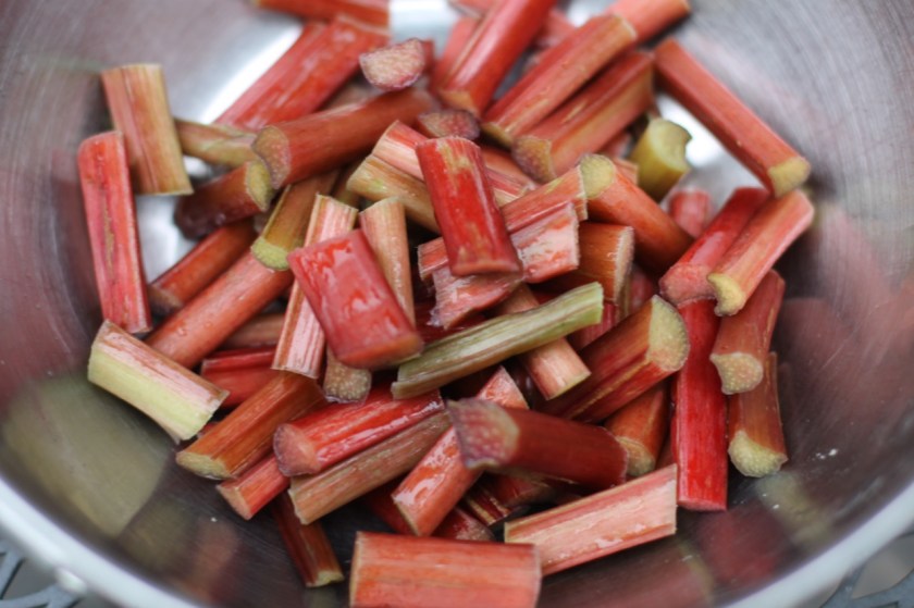 I get excited when my rhubarb plants are ready in my garden. One of my favorite ways to use rhubarb is to make a delicious sauce. The main ingredients are rhubarb stalks, sugar and spices. It is very easy to make. You just have to let the stalks sit in sugar until it exudes its liquid, add some spices to offset its sourness and cook gently on low heat for a short time. That is it! I like to serve it with pancakes.