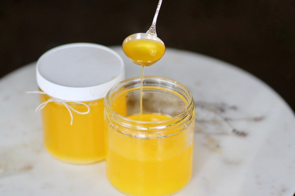 Every time I make ghee I wonder how it was invented. Perhaps someone left some butter cooking on the stove by mistake … Ghee is not so well known in our culture but is widely used in many countries especially in India. It is called drawn oil in English and is served with steamed lobster and crabs in the United States. Chefs like to use it because it has a high boiling point so it does not burn easily. In fact, ghee is one the best cooking oils. In addition to its convenience, people in India use it for its numerous health benefits and is considered to be a sacred food.