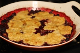 Put the cobbler in the oven and bake for about 35 – 40 minutes or until the top is golden brown and the berries are bubbling.